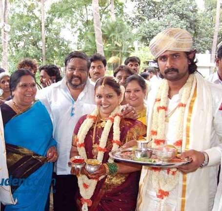 His father in law Ravi Belagere is a popular writer, journalist, novelist and actor of Karnataka, India. He owns Kannada tabloid Hi Bangalore. He started Prarthana education society in 2002 to educate poor students. At present they are 6500 students and 275 teachers serving the school. Ravi Belagere is married to Lalitha and the couple have a daughter named Bhavana Belegere.